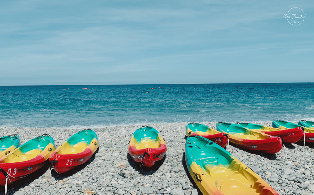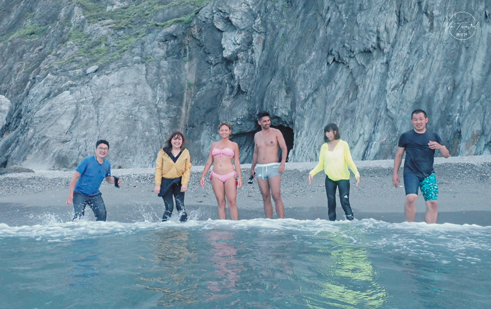 烏岩角站在這一塊狹小窄長的沙灘上,在這我們會停留約30分鐘,可以在這下水也可以在這拍一些網美照,烏角岩是個無人島秘境,來到這的方法有兩種一個是獨木舟、另一個方法是沿著蘇花公路旁的岩壁攀岩而來,但是近年來已經改為只有獨木舟可以抵達。