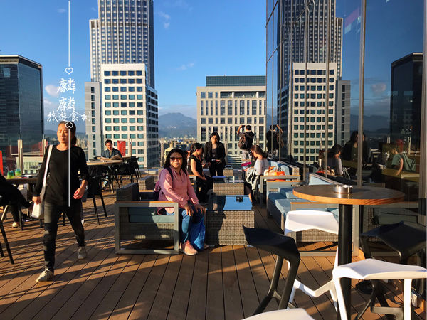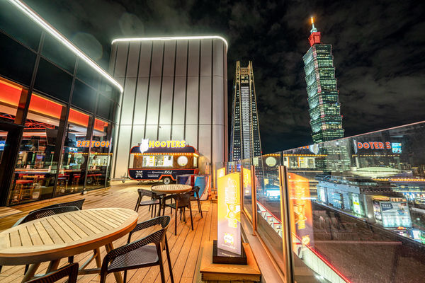 由於HOOTERS開在大遠百A13的14樓,餐廳特別開拓了戶外餐區,坐在沙發上,面對的就是101大樓,從下午的黃昏開始,美景簡直是讓人讚嘆不已,成為信義區獨家擁有的風景區。