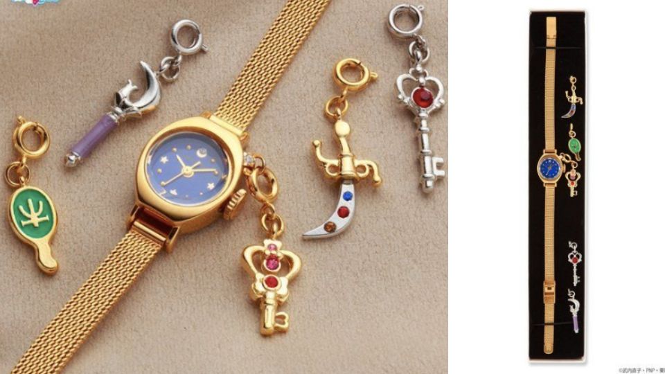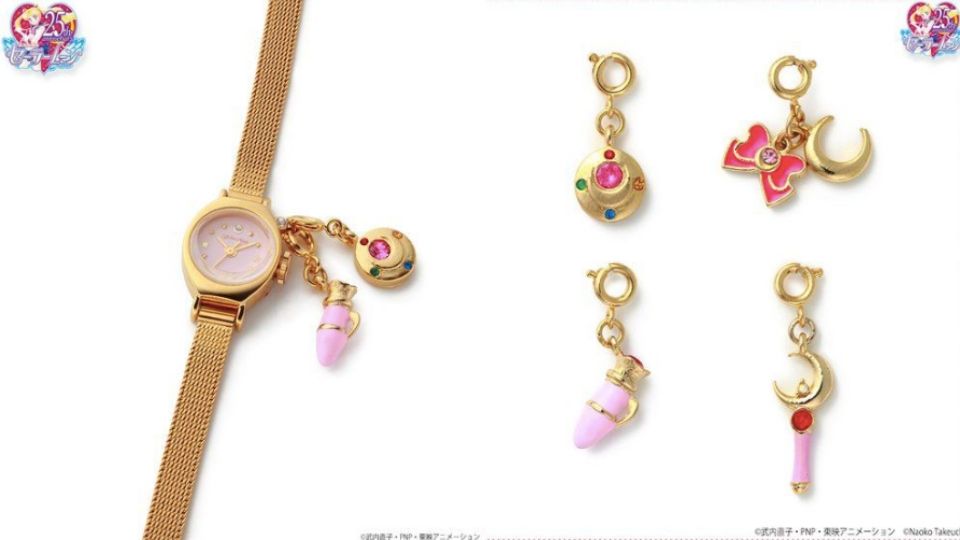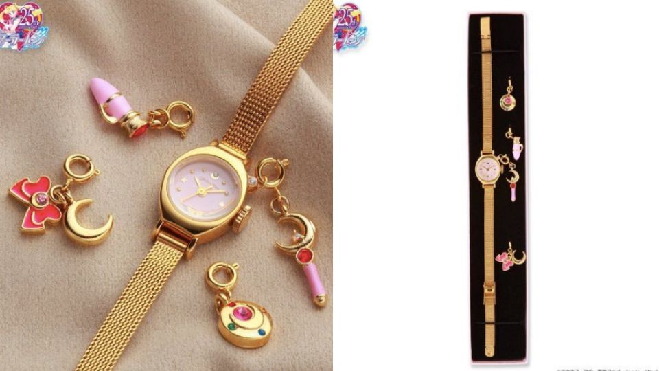 在吊飾部分一點都不馬乎,能夠擁有實用好看的手錶,同時還能一次收藏四款美少女的道具,換算下來其實很划算呢!玫瑰粉色的吊飾是:魔法棒、胸針、變身筆和緞帶,都是在美少女中月野兔出現過的道具呢!