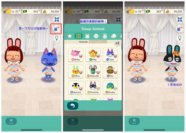 4. 2020.05第一次更新的時候,新增了衣服以及傢俱預覽功能,衣服除了穿戴在自己身上外,也可預覽穿戴在小動物身上的樣子,如果想看特定動物穿戴的效果,也可自由切換。