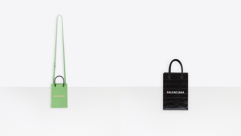 早在2017年秋冬系列,Balenciaga將專賣店提供給客人的紙袋作為靈感設計,打造托特袋的紙袋包,沒想到一戰成名,成為當時候各國潮人的IT Bag。2019年秋冬,品牌將這款托特袋變迷你推出全新Phone Holder Bags,採用細緻的小牛皮打造,包身上壓印Balenciaga品牌Logo,除了手提把設計更附有可調整長度的肩背袋,推出後更竄升品牌熱賣包款之一。(約NT24,000-30,000)
