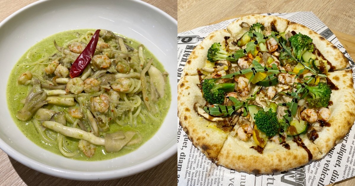 義式餐廳「石壁家」這次將招牌的青醬義大利麵以及披薩做出全新風味,不只讓新鮮的火燒蝦入菜,更加入鴻禧菇、舞菇減少膩味,清炒口感更顯清爽;披薩則是加入多樣蔬菜與淋上巴薩米可醋等佐料,讓整體吃起來不只不膩口,還相當涮嘴。