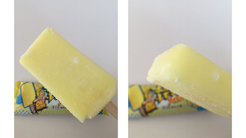 一打開包裝就可以聞到檸檬香味,黃色的外表看起來十分清涼,可以吃到表面的檸檬粉,酸酸甜甜的滋味超清新!完全適合夏天來一支消暑,吃一口馬上透心涼,直接降溫啊!