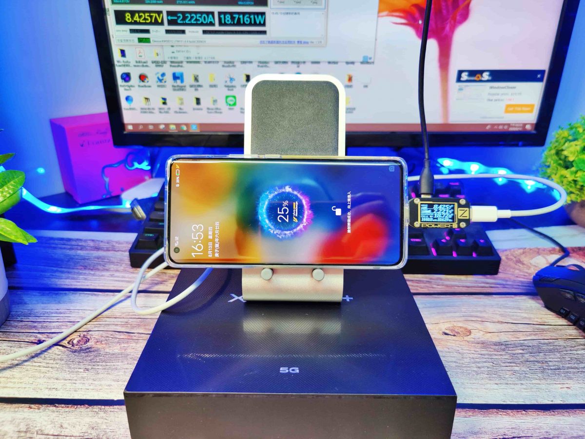 Vivo X50 Pro+ 雖然手機本身是支援44瓦的「 Vivo Super FlashCharge 」,但隨盒裝附贈的是最高55瓦輸出的充電器,並且在充電線上標示 Vivo Super 2.0。筆者實際測試,電量從 0% 充至 100% 需花費將近 67 分鐘,這樣的充電表現只能算是「 中上水準 」而已,面對即將推出的 100 瓦充電,有種小巫見大巫的感覺。