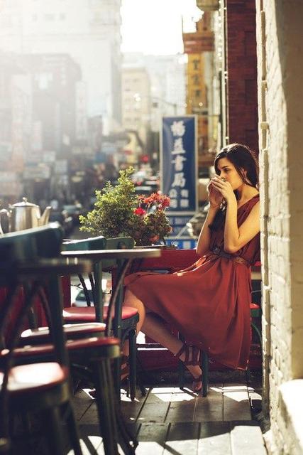 如果光線真的不好,那就不要太勉強了,有時漆黑也是一種美,可以請女友側坐,微微露出半張臉,或是乾脆直接背坐,營造神秘的意境,效果會比刻意補光來得好,一方面也能將人及景物拍得恰到好處。