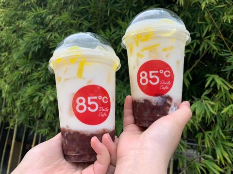 復古風潮再度捲起,85度C也推出了超懷舊飲品「紅豆粉粿鮮奶」飲料,改良了大家小時候最愛吃的紅豆粉粿牛奶冰棒,加入了精心熬製的蜜紅豆,與新鮮手作的粉粿,搭配上最濃醇香的新鮮牛乳,口感相當綿密滑順,幸福感爆棚!