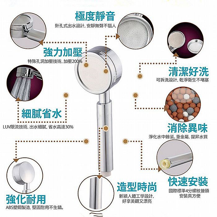 約200%加壓/約50%省水,出水力強。在家就能來一場SPA紓壓水療,刺激全身穴道,去除一身得疲累感。