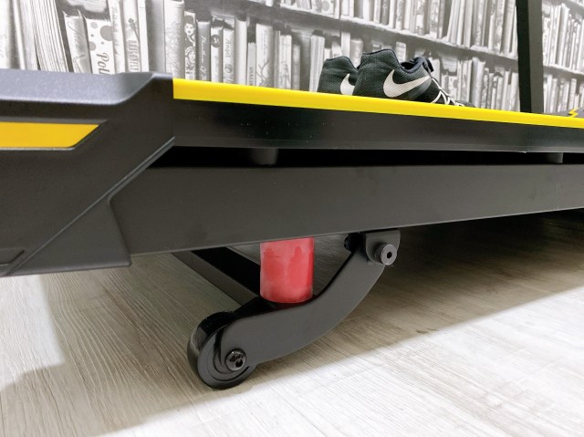 放下時將卡榫推進去,輕壓就可以將跑到放下來,加上緩降的氣壓設計,在跑台放下時不會擔心壓傷小孩或寵物,沒有安全疑慮喔