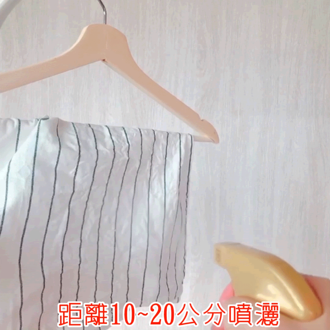 將皺巴巴的衣服噴上噴霧後,稍微拉一下,很快就平整很多!超級神奇!