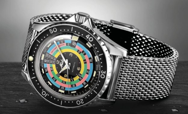 美度表今年推出的Ocean Star系列是以潛水錶為主,受到許多人的喜愛。這支錶是將過去1961年代發表的潛水錶重新復刻,並且限量推出。延續過去的鮮豔面盤設計,手錶不僅有時、分、秒、日期顯示,彩虹圈的數字則是代表減壓停留時間,為方便潛水前和潛水過程中的計時,因此很適合喜愛潛水或海上運動的人,此外錶帶也可以換成鍊帶的款式。