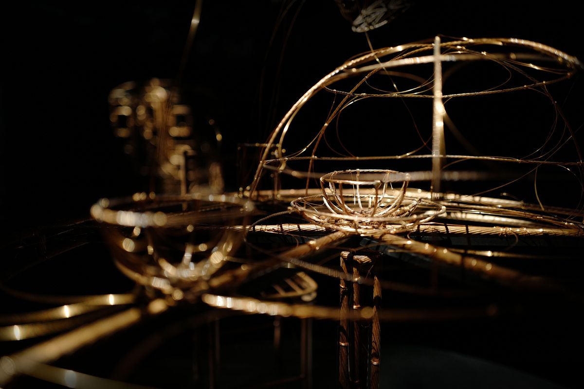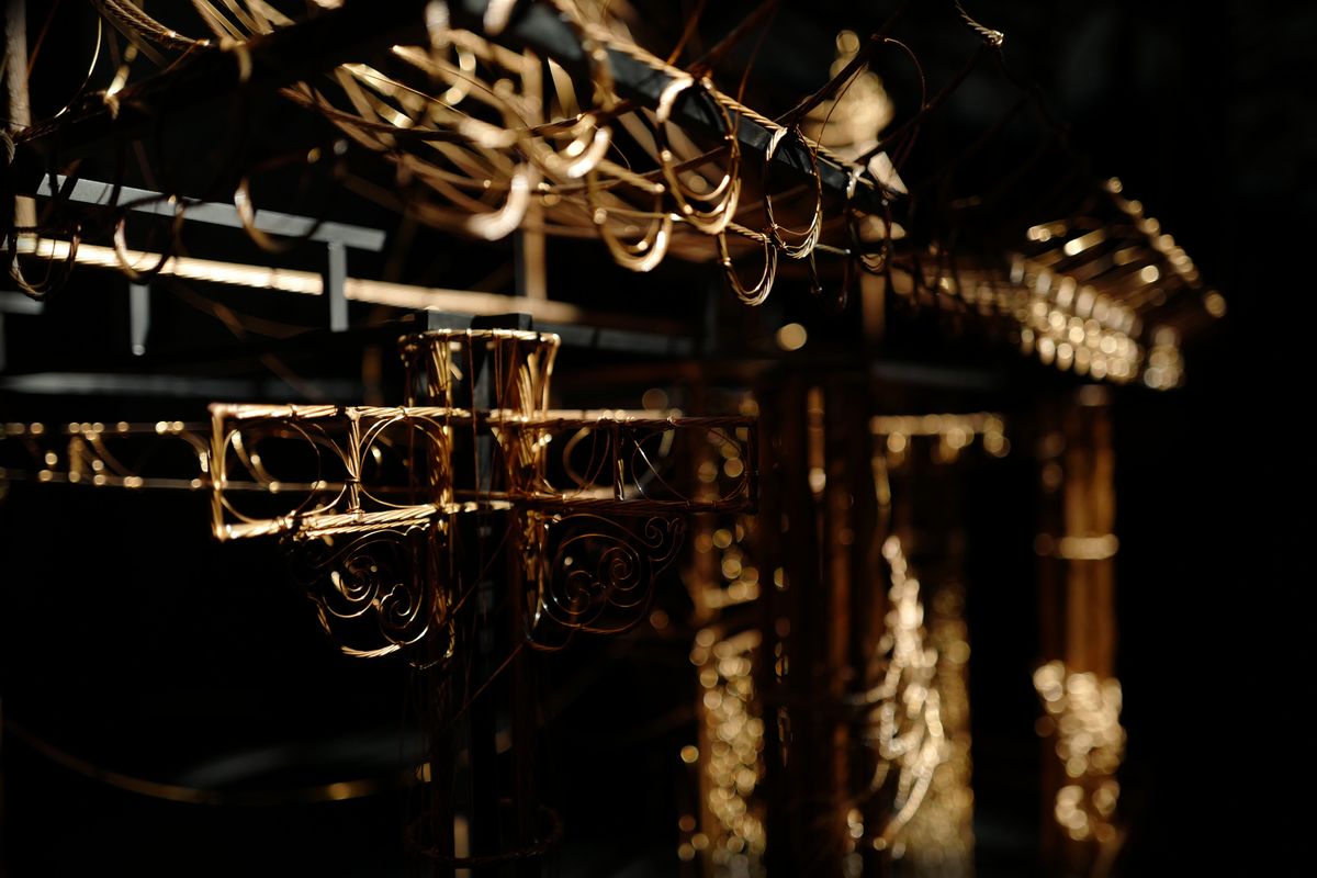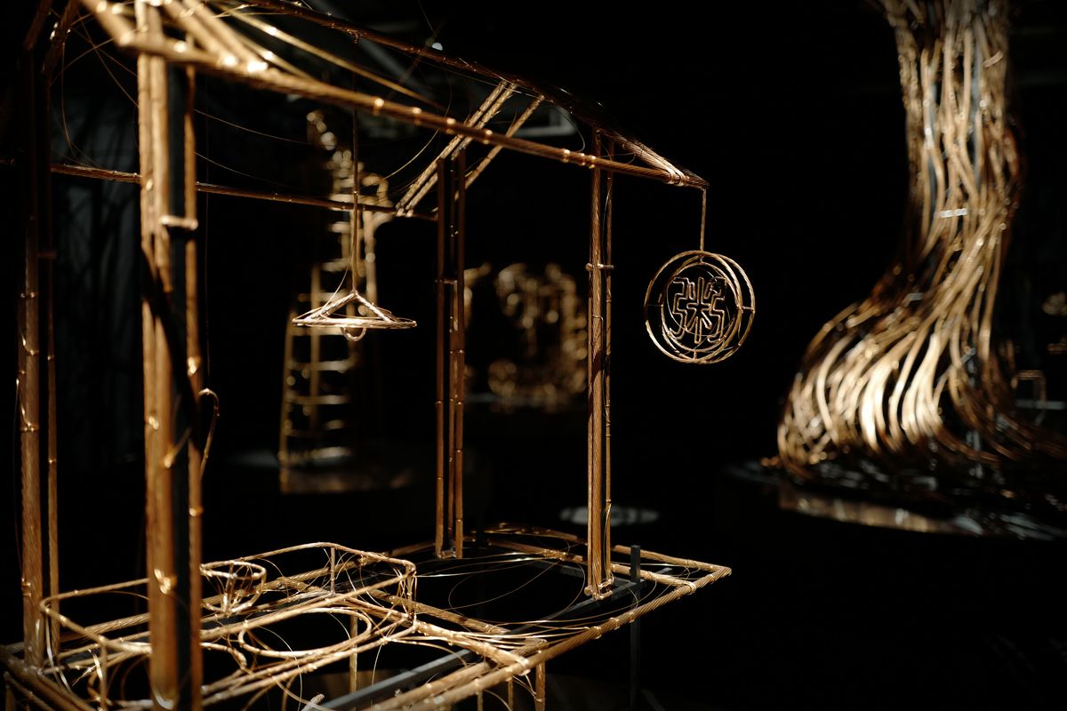 本次展覽以總長 3,367 公尺、重 1 公噸的電纜纜芯銅線為基底,架構起台灣常民生活的骨幹,媒材前所未見。其上也乘載著共通的文化語彙,像是照亮黑夜的燈塔、每日往返載客的大眾交通、隨時守候傾聽的神祇,甚至是一碗十年如一味的好味道。