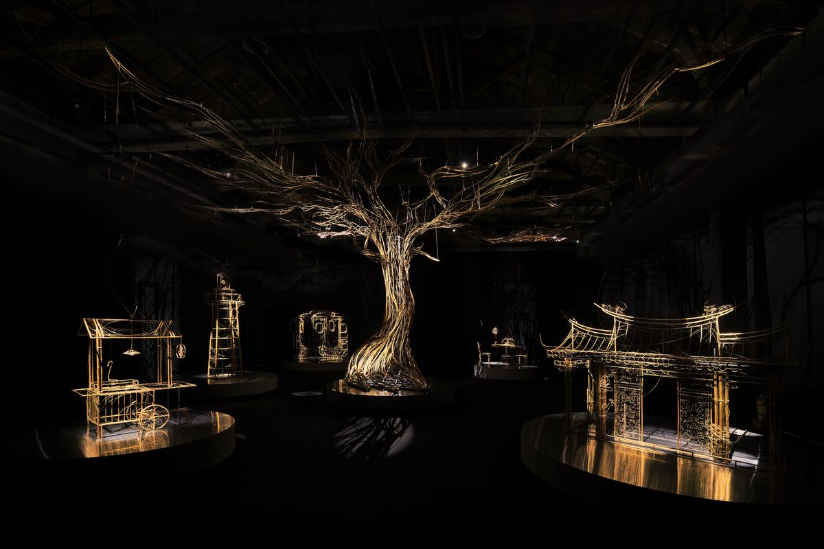 敬邀INCEPTION 啟藝操刀策展,跳脫以往商業型展覽會模式,更與金工藝術家李昕跨界合作,以電纜銅線為基底,創作6座以台灣市井小民生活為題的裝置藝術,搭配照明設計和語音導覽,營造沉浸式美學氛圍,巧妙串聯品牌精神及藝術思維,打破商業、非商業界線,開拓品牌全新格局。
