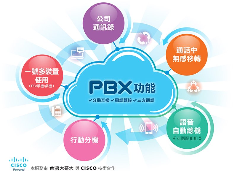 台灣大雲端總機服務是台灣大哥大與全球知名公司 Cisco 技術合作建置的一套交換機系統,是人數不多的中小企業,或是在家上班的企業、SOHO 族對外或內部相互連絡的好幫手,下面筆者將它的特色優點以條列方式來讓大家更了解雲端總機服務: