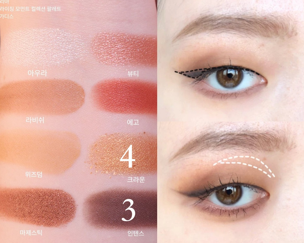 單眼皮的奶茶色眼妝可以分為兩種畫法~第一種就是最簡單的平行漸層眼妝!首先先拿一淺膚色眼影當作眼皮打底,製造眼睛奶甜奶甜的感覺,又可以讓眼皮更乾淨、更好暈染~接著拿出奶茶色眼影,範圍稍稍超過眼皮,或是在睫毛根部上0.5-1公分內,這樣能夠最好的消腫泡,又不會讓眼妝被眼皮吃掉!
