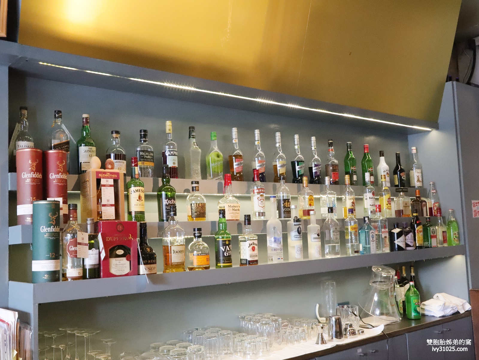 櫃台後方擺放知名的各國調酒烈酒,有些烈酒酒名已經忘記或是沒見過><。