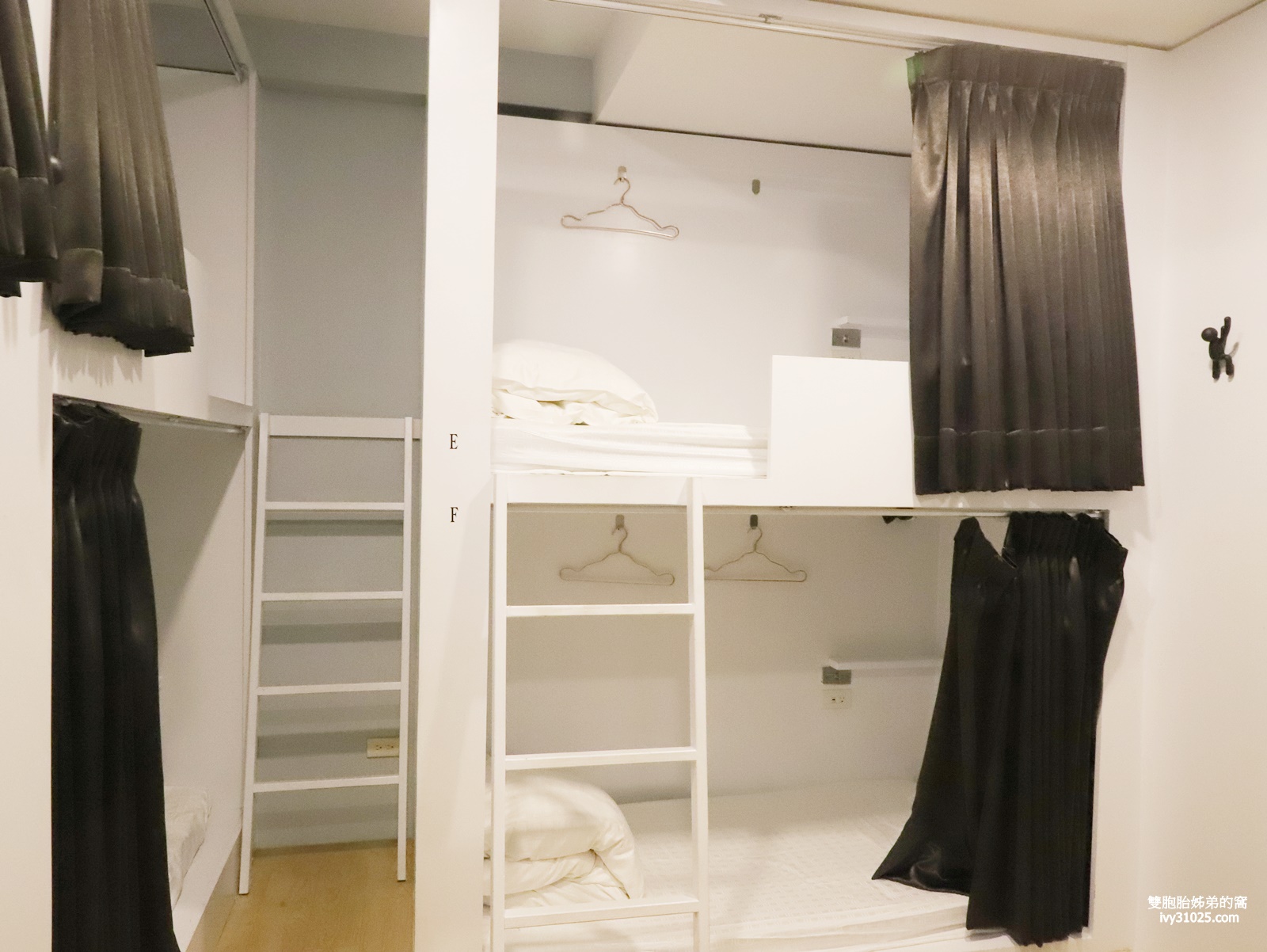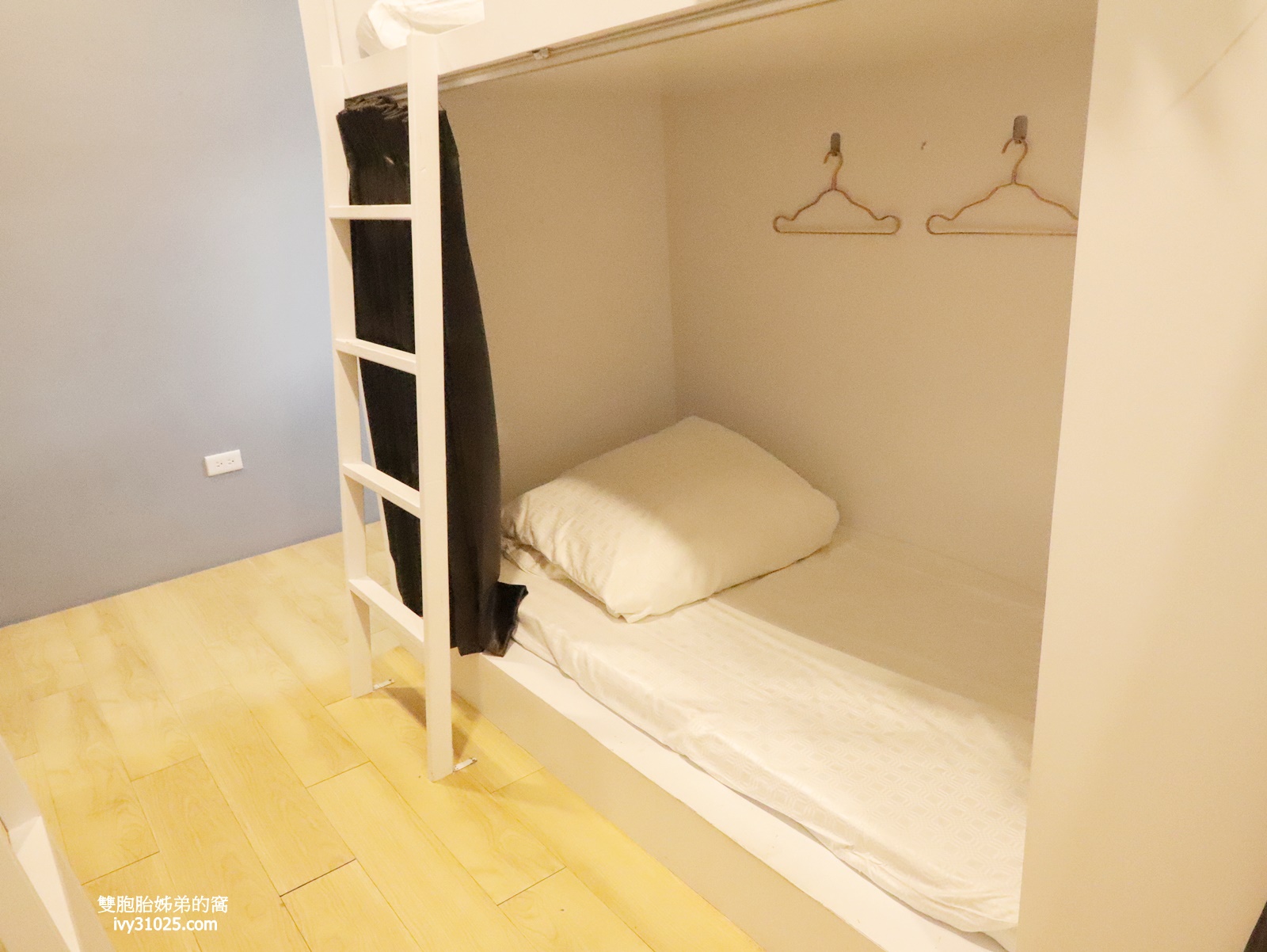 也有一字型走道的背包客棧房型,每床的床邊都有附上一個小的閱讀燈。