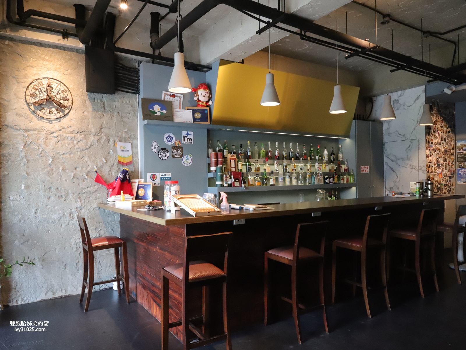 一走進民宿,看到櫃台放滿琳瑯滿目的各種不同濃度烈酒,民宿比較偏向美式酒吧風格,感覺像似走進夜夜笙歌的酒吧,店內工業風裝潢搭配挑高的吊燈,和吧檯高腳椅,及讓人懷念的懷舊彈珠台。