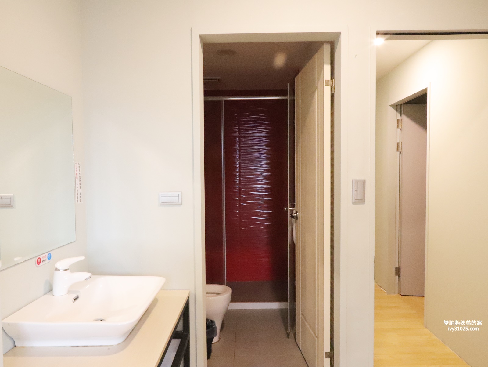 盥洗間整理很乾淨的讓客人使用,尤其今年暑假大家都猛往宜花東地區旅遊,如果要出遊花蓮,記得先提前預約M.house旅宿悠~~,也可CHECK IN 後,將行李放置一樓行李寄放區後,再帶小朋友前往遠雄海洋公園去暢玩一天後回來休息,只要開車20分鐘就抵達M.house旅宿,超方便,或是到花蓮最大的觀光夜市-東大門夜市逛逛~~