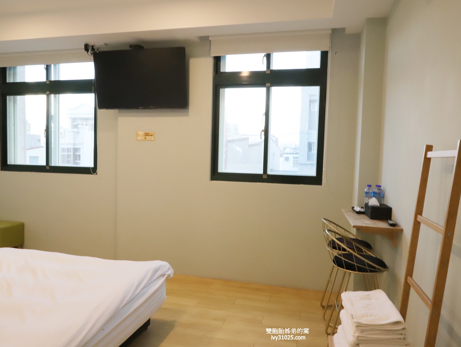 這間4人房的液晶電視是放置在窗戶邊,躺在床上看到外面花蓮街景,窗邊有小椅子可以坐。