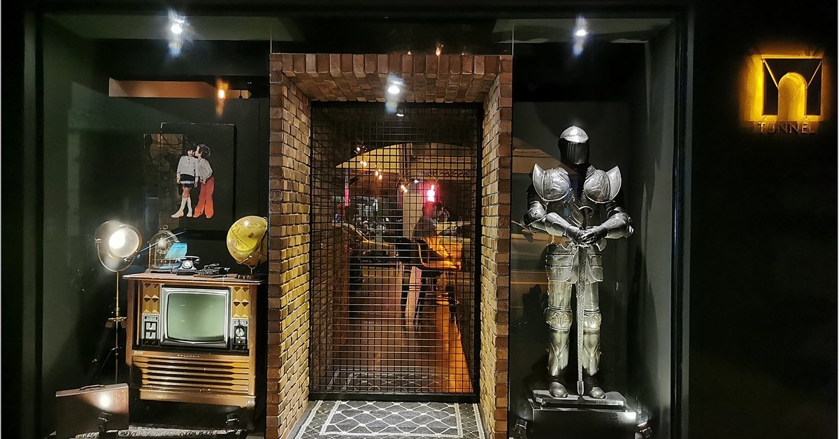尚未踏入店內,就會被隧道酒吧神秘帶有西洋復古風情的門口及櫥窗所吸引,而隱藏在磚塊牆面中的,是店家精心設置的入口機關,在打開的同時也不免讚嘆!(太酷了吧~)通過店內長長的隧道長廊,映入眼簾的是座位區及包廂區,在這裡能很放鬆的品嘗創意調酒及食物,也很適合三五好友在下班後一同來此釋放壓力,享受愜意的夜晚~