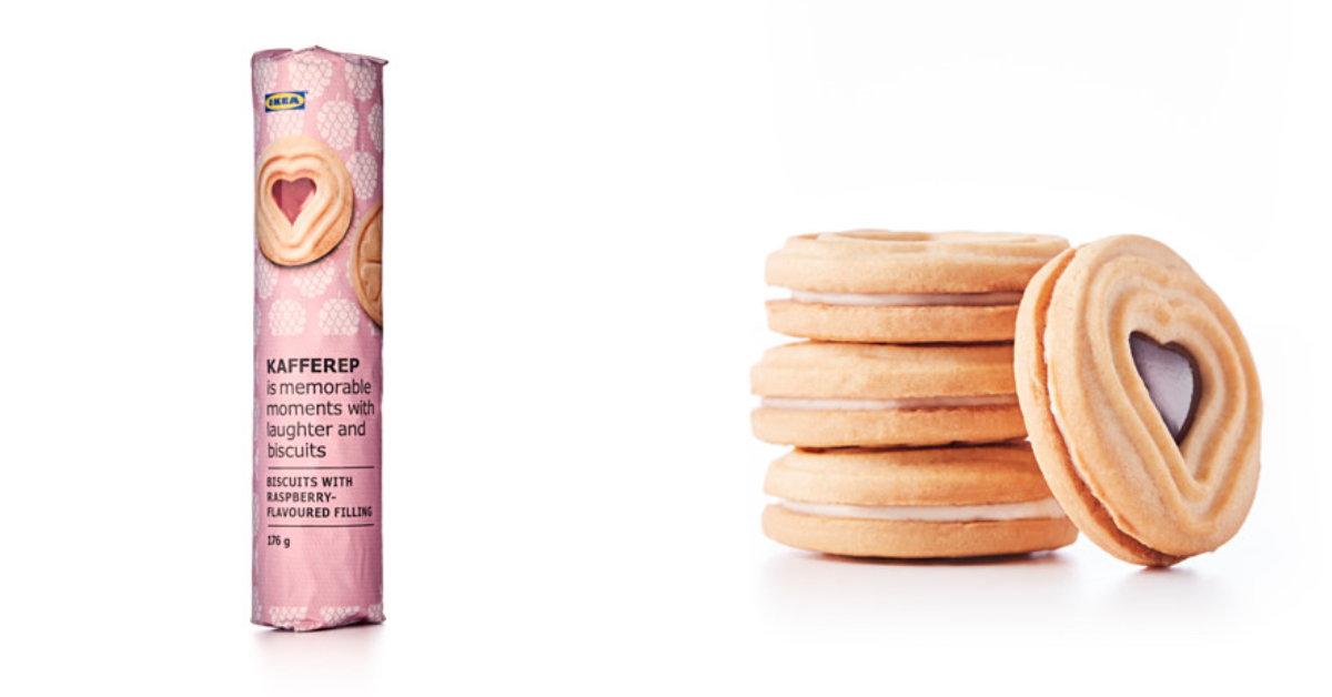 「KAFFEREP覆盆子夾心餅」中間愛心的造型相當可愛討喜,奶油餅乾夾著柔軟的覆盆子內餡,酸甜的莓果滋味廣受許多大小朋友喜愛,加上粉紅色的外包裝讓人少女心噴發,看到就想買!除了覆盆子口味,巧克力口味也相當受歡迎,而且一包只要50塊!