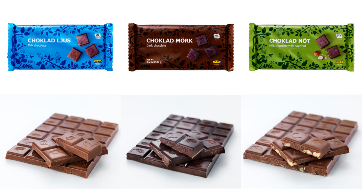 不曉得是不是因為北歐天氣寒冷,瑞典人才這麼愛吃巧克力補充熱量!IKEA超市內販賣了各種巧克力,其中CP值最高的絕對就是「CHOKLAD巧克力片」!共有牛奶巧克力(左)、黑巧克力(中)、堅果牛奶巧克力(右)三種口味,39元就有一大片,是不是很划算!儂編還記得以前高中時會買一大片帶到學校跟同學一起吃~此外,此巧克力以UTZ認證可可豆製成,實踐了永續價值,不買來吃不行!(愛吃還硬要找理由的儂編)