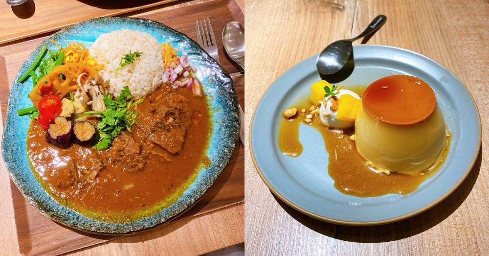 妞編輯個人私推每日限量的「紅酒燉牛頰咖哩」,肉質相當軟嫩,淡淡酒香與辛香咖哩相輔相成,若覺得味道稍膩時,還可以搭配隨附的涼拌蓮藕。除了單點之外,也可選擇加購套餐,選擇布丁(或唐揚雞)配飲料的組合。稲町家的布丁製作未添加水,吃起來相當紮實,甜食控必點!