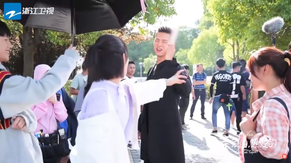 李現真的幼稚小孩一枚~其實拍攝時正值夏天非常熱,楊紫和他借防曬噴霧,他還一直揮來揮去不給就是不給,還故意叫楊紫站後面一點讓她曬太陽,很壞耶!