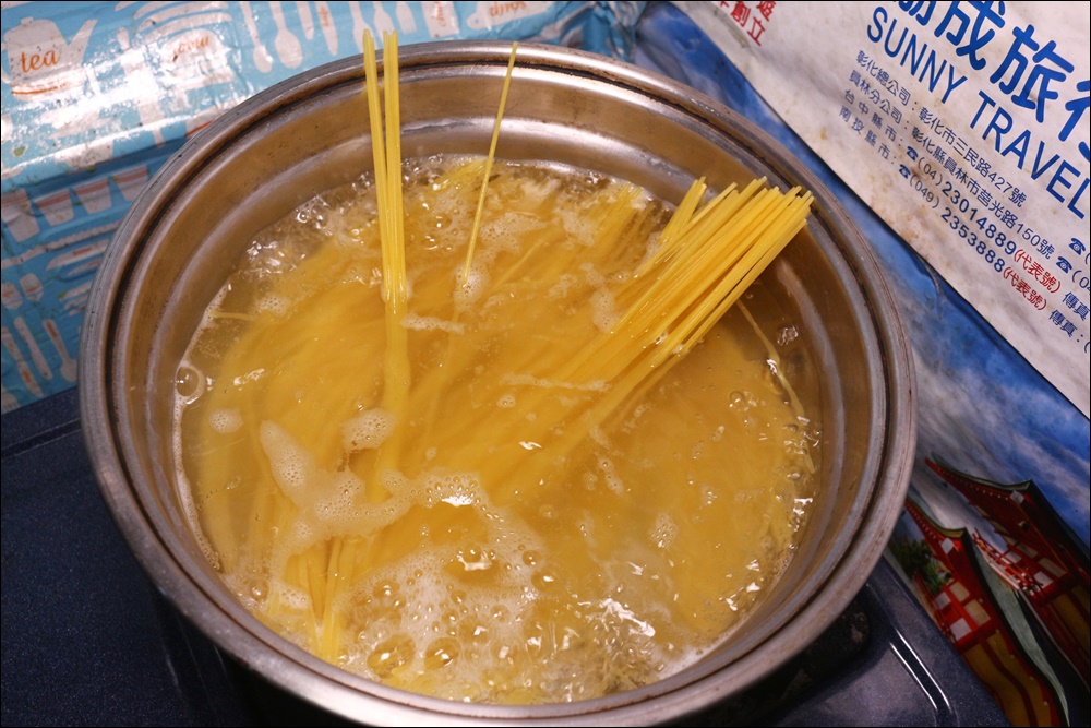 1.滾水加入鹽巴後,再將義大利麵條以撥散的方式下鍋