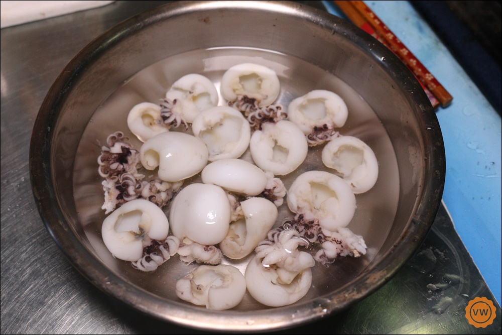 事前準備:小章洗淨之後已滾水汆燙至熟後泡冷水備用。