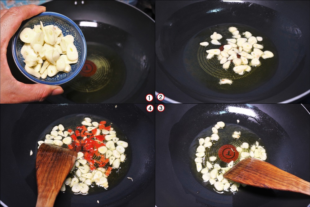 注意要小火,不然蒜末容易焦掉,不僅影響色澤,也會有苦味。