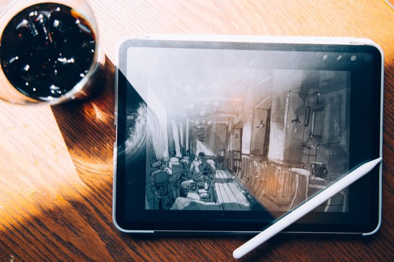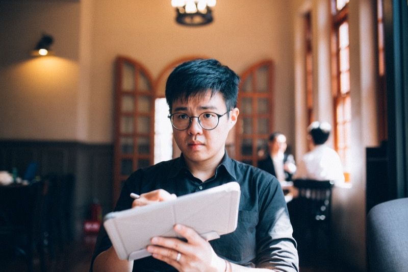 電繪和手繪的邏輯完全不同,畫法和手感也不一樣,諾米花了半年時間學習,才終於畫出第一張電繪作品。現在他慶幸自己沒有執著於當初的堅持,因為相較起手繪,電繪的創作和修改速度都大大提升,使用 iPad 搭配繪圖軟體 Procreat,也讓他脫離桌機繪圖在地點上的限制、桌機專業繪圖軟體價格昂貴的困擾。