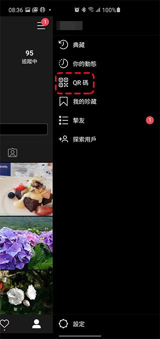 - 選擇「掃碼」,即可生成自己的 QR Code 供他人掃描,另外你也可以把生成的 QR Code 圖片保存下來或分享給其他人。