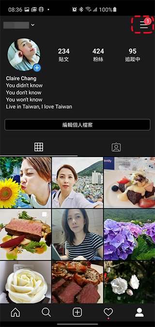 - 開啟 Instagram 應用程式,進入個人資料分頁。