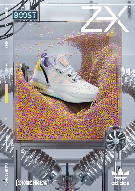 有別以往的形象影片,ZX系列以全動畫數位形式呈現,如同一場奇幻前衛的視覺饗宴,能身歷其境體驗ZX的回彈、輕盈與柔軟特質,與ZX家族所代表的高科技DNA相呼應。運動潮牌界霸主――adidas Originals 本季推出集機能―全腳掌Boost中底科技、時尚―迷幻漸層色系、科技―全動畫形象影片於一身的ZX系列,無疑是2020下半年,潮流運動界的鞋王。