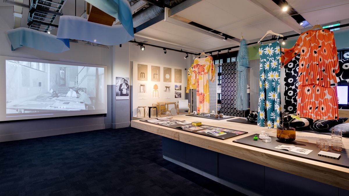 展場後方是芬蘭國寶級印花布藝設計品牌。1951年成立的Marimekko足以代表芬蘭服飾及居家產品的風尚。以獨特圖騰的樣式、鮮豔明亮的色彩、質地耐久的材料推出一系列布料,為住在高緯度日照不足的北國人們改善居家生活環境,增添色彩來溫暖人們的心靈。本次展出芬蘭直送的Marimekko服飾、布藝、家居等產品,呈現最完整的Marimekko設計脈絡,許多限定品與雜誌在台灣更只有展覽期間有機會一睹為快!