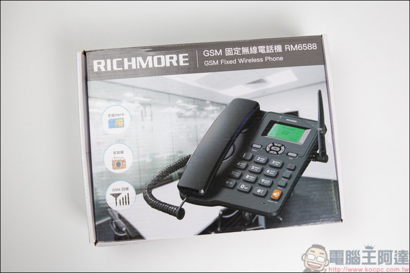 由於現代手機的普及及便利性,幾乎人手一支手機,對於年輕一輩來講,傳統市內電話的需求就沒有手機來的多,很多人家裡可能根本沒有室內電話,反而是公司或是中老年一輩的人使用的比較多。但市內電話還是有它的不可取代性,例如一些不會用科技產品的長輩、偏僻的山區或工廠/辦公室等等,都還是以市內電話為主。而今天要開箱的產品是來自【RICHMORE】所推出的「GSM固定無線電話機 RM6588」,是一款外觀就跟一般室內電話一樣,支援SIM卡、收音機功能、GSM四頻的一台多功能電話機,只要接上電源線和裝上SIM卡後,在任何地方都可以免拉線、免施工直接撥打/接聽電話,而且還能使用簡訊、FM收音機、計算機、日曆...等功能,比起傳統市內電話來講,功能性豐富許多。