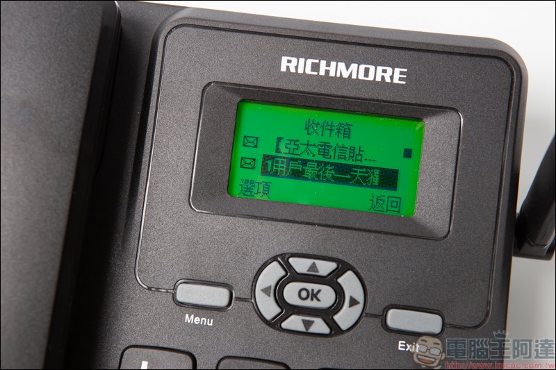 簡單來說,只要把RM6588當作是一台手機+市內話機的合體版就對了,這樣的畫面就讓我想到十幾年前的手機,不過在電話機上可以看到簡訊功能也覺得嘖嘖稱奇: