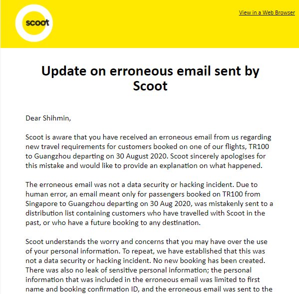 這項通知乍看之下完全沒有問題,畢竟疫情期間總是要嚴格把關,但問題來了,人家壓根兒沒有訂機票啊!難道是被盜刷或是個資外洩被盜用嗎?酷航在官方臉書上面緊急張貼了聲明,表示因為內部系統設定失誤而誤發了郵件給非該班機乘客的民眾,且強調絕對沒有個資外洩與盜刷扣款的問題。