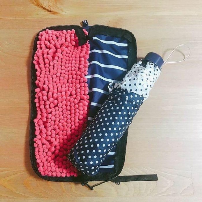 日本有賣雨傘專用的收納袋,裡頭有高吸水的布料,讓濕的雨傘也能方便收納!