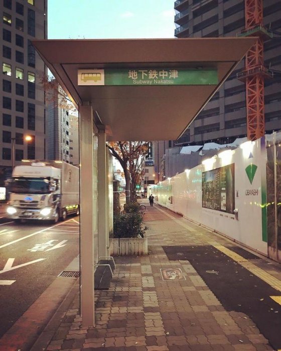 日本巴士站牌跟馬路中間是有隔板的