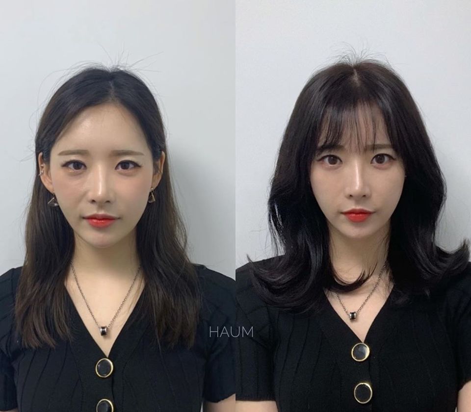 另外這位小姐姐額頭雖然不高、但是很寬, 跟右邊一樣做出蓬鬆感之後,瀏海就可以很好的發揮修飾效果,讓視覺焦點不會往額頭兩側集中、也就弱化的額頭過寬的問題!