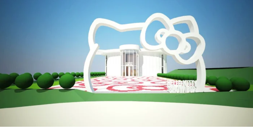 整棟建築就是以Hello Kitty的臉打造完成的,整個鳥瞰上去非常壯觀,怕沒有拍照點嗎?不用擔心!門口就有一個巨型白框可供大家跟可愛的臉龐照像,看來最佳打卡點就在這了~
