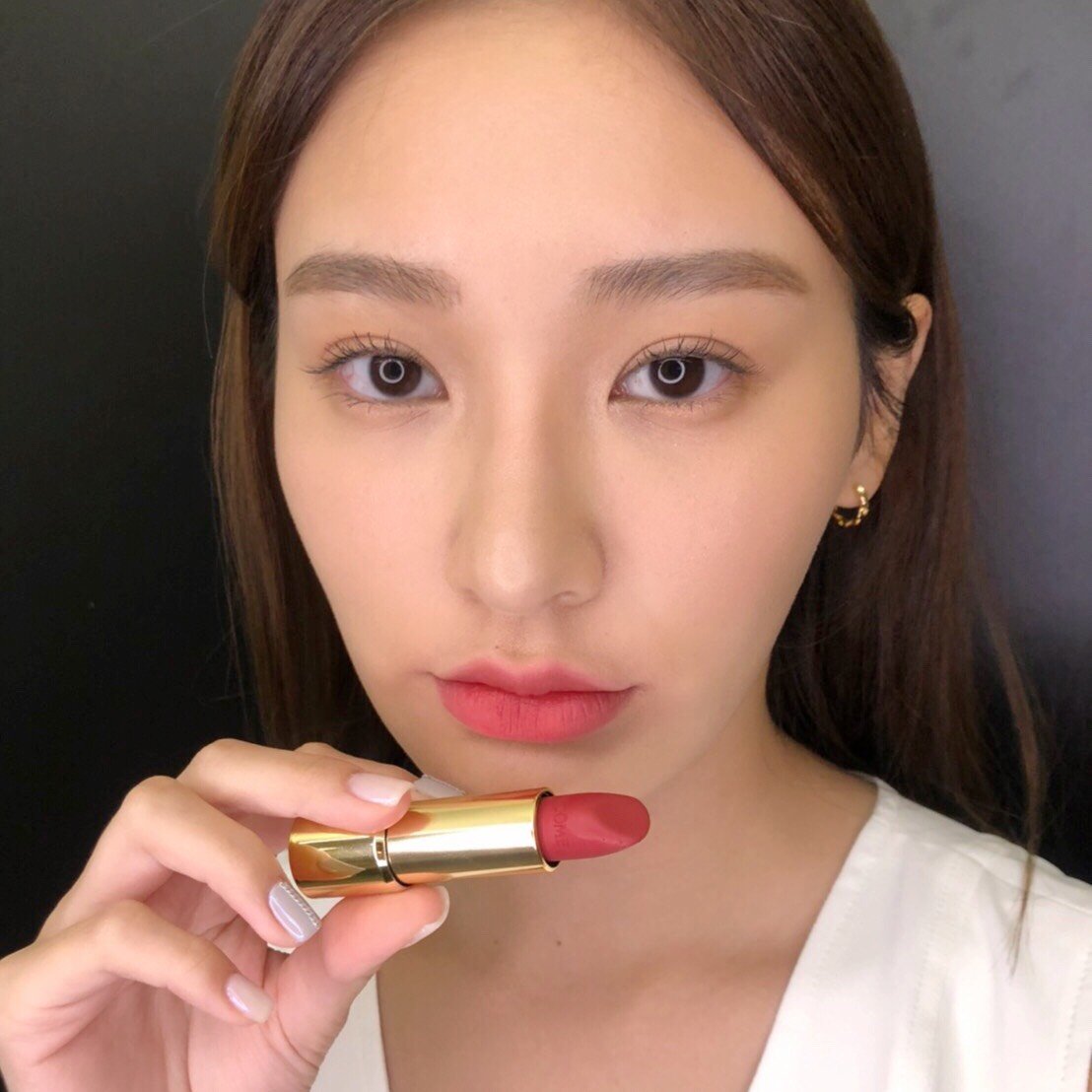 彷彿淋上甜而不膩的焦糖橙紅,帶有些許土色調,獨特絕妙的橘紅上嘴瞬間展現難得一見極度優雅氣質。還被資深櫃姐點名為#196接班人,絕對是2020最受到關注的黑馬色號之一!