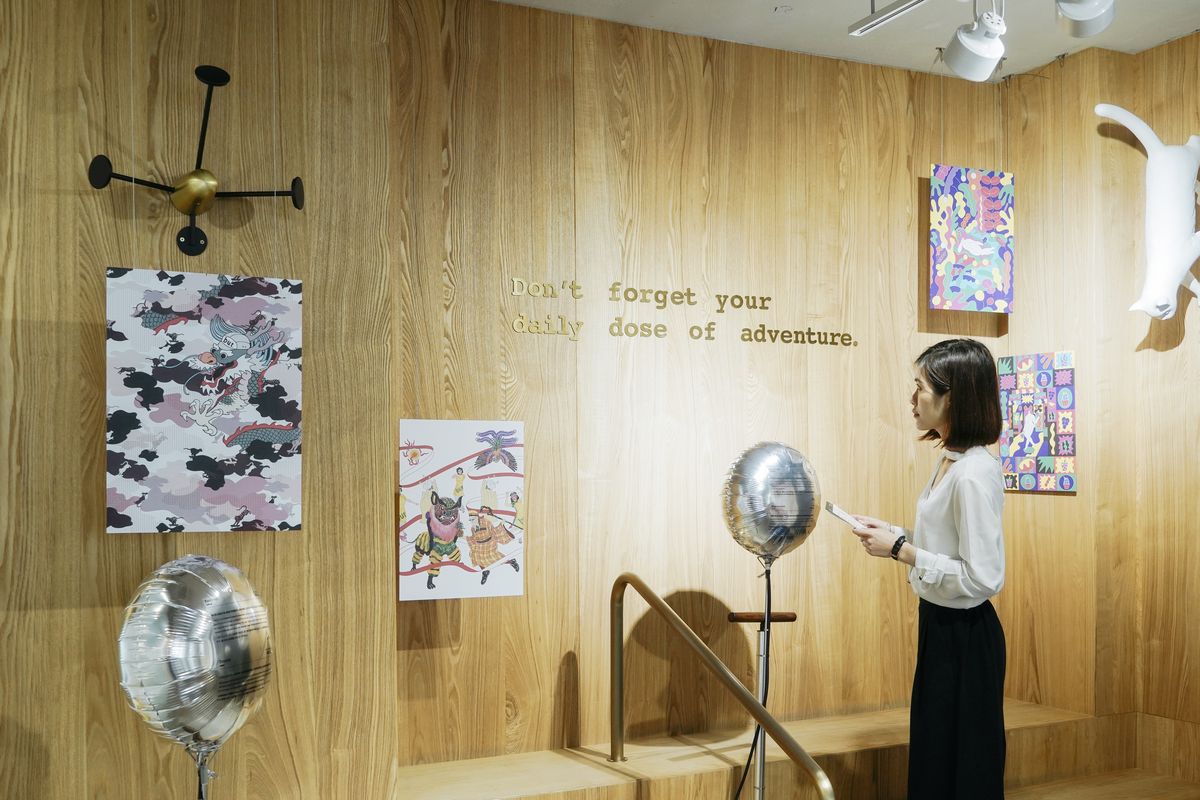 店內長桌區則是在家工作者LULU的專屬空間,以全新的視角感受人物在小宇宙中互相分享圓餅,跳躍的活潑姿態,傳遞滿滿俏皮。