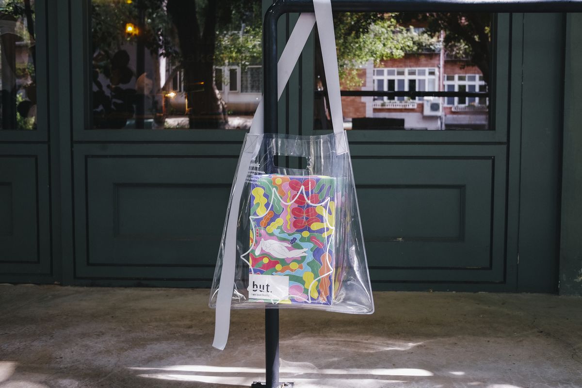 本次跨界聯名更將觸角延伸至「聯名包裝」與「限量透明提袋」。體驗完展覽後,還能至包裝區挑選喜歡的藝術家聯名包裝帶回家收藏,搭配限量加購的時髦透明提袋(加購價NT.198),爆炸外框設計,乍看宛如帶走一幅經典畫作般,就像but.一直以來引以為傲的奶油圓餅,簡單、純粹卻能炸出台味時髦新高度!nbsp;