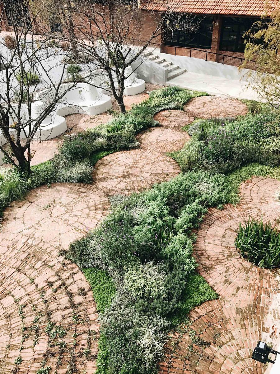 另外就是千萬不要把花一盆一盆隨便堆起來,很多時候花會死掉是因為被陽光嚴重曝曬的緣故,所以正確的景觀設計應該是建立一個完整的生態系,而非單純以視覺來考量,因為如果只顧美觀,就會變成一種無謂的裝飾,而完整的生態系可能底層會有苔蘚、蕨類,接下來有草花灌木,然後有小橋、大橋,這些植物之間必須要能夠互相幫忙,例如上面的樹可以幫忙遮擋陽光,避免下方的土壤被烤乾,這樣一來澆水頻率就不用那麼高,照顧起來也方便不少,所以經過妥善安排的層層堆疊是很重要的,藉此能夠打造出一個貼近自然的生態系。