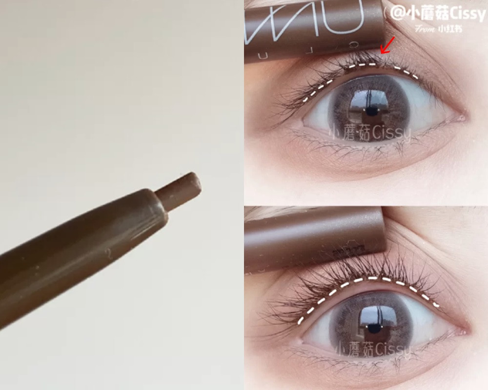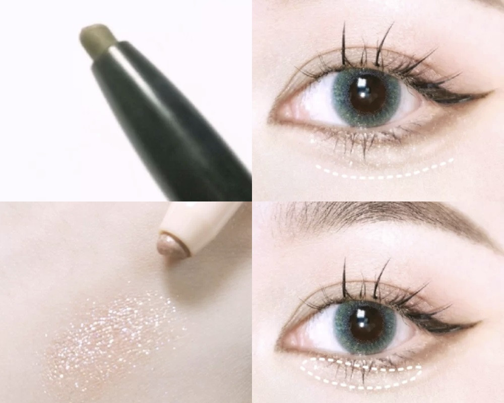 這一步不只可以幫助增加眼睛整體大小,也可以幫助放大瞳孔~首先在瞳孔正下方以淺咖啡色眼線筆或眉筆畫出一道陰影,接著在臥蠶上使用珠光眼影打亮,就能輕鬆增加眼睛明亮度!如果擔心臥蠶陰影不夠自然,可以使用棉花棒在臥蠶陰影邊界做暈染~
