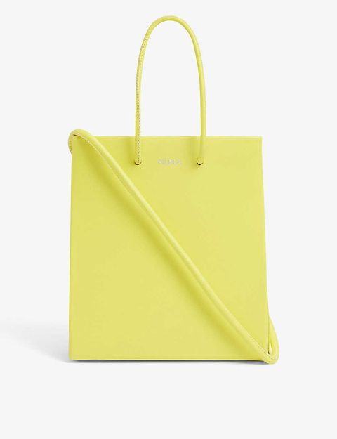 黃色迷你斜背皮革托特包,NT.13,600。