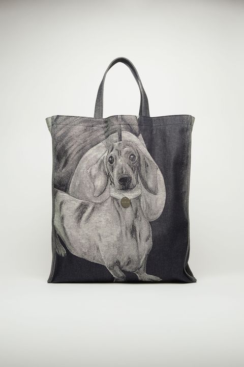 臘腸狗丹寧緹花托特包,約NT.9,810。